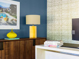 Boston designer Michael Ferzoco had worked with this homeowner on several projects, and the client turned to him again after he purchased this house. “He had bought a brand-new contemporary interpretation of a Craftsman and wanted us to give it a contemporary midcentury modern vibe,” Ferzoco says.